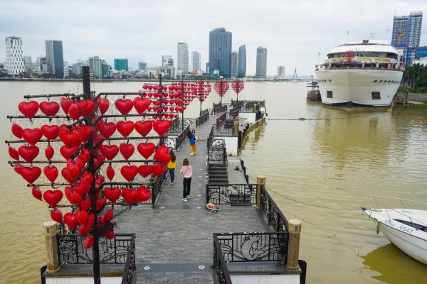 Cùng nhóm bạn du lịch TP.Đà Nẵng sau thời gian dịch, chị Vũ Thị Thu (quê Hà Nội) là một trong số ít du khách ghé đến cầu Tình yêu để chụp ảnh và không khỏi ngạc nhiên.