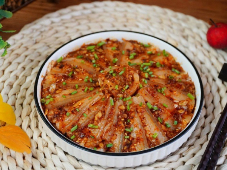 – Pha nước sốt tỏi: 1 củ tỏi đập dập, băm nhuyễn, thêm muối, 1 muỗng dầu mè, 1 muỗng nước tương, 1 muỗng nước luộc thịt, 1 muỗng dầu ớt (tuỳ khẩu vị). Trộn đều đến khi hỗn hợp sánh, thơm nồng mùi tỏi.