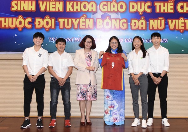 Sáng 28.2, bốn thành viên Đội tuyển bóng đá nữ quốc gia Việt Nam đã có mặt tại Trường ĐH Sư phạm TP.HCM để nhận khen thưởng. Trường ĐH này cũng là nơi các tuyển thủ đang theo học khoa giáo dục thể chất.