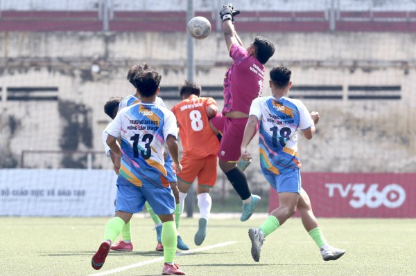 Thủ môn đội Trường ĐH Nông lâm chơi chắc chắn góp phần giúp đội bóng là 1 trong 3 đại diện phía nam vào vòng tứ kết