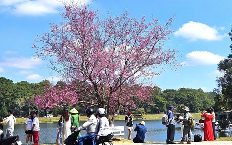 Mai anh đào rực hồng bên hồ Xuân Hương, Đà Lạt