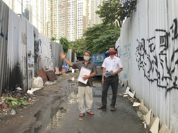 Đại diện hai gia đình ông Tài và bà Thảo (trái) bên dự án mà nhà của họ bị thu hồi |