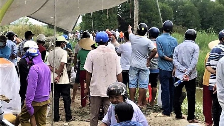Khoảng 8h ngày 11/4, ông Tròn dùng cây đập ông N. ngã xuống vuông tôm rồi dùng dao chém vào người nạn nhân. Khi em trai tử vong, ông Tròn kéo thi thể nạn nhân khỏi hiện trường khoảng 50m rồi dùng 2 thanh sắt, 4 cây gỗ dìm xuống vuông tôm.
