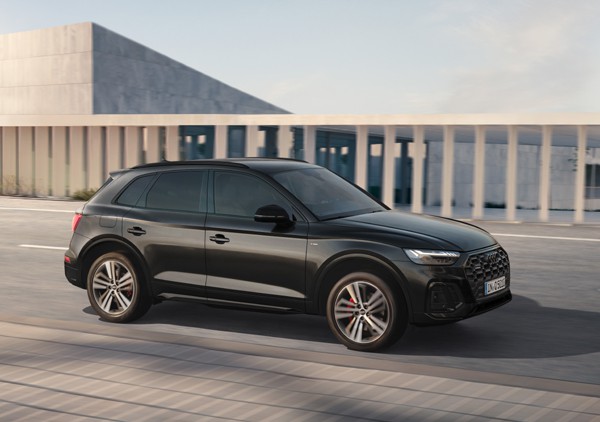 Audi Q5 phiên bản giới hạn đen huyền bí, sở hữu thiết kế thể thao và lịch lãm với những điểm nhấn màu đen trên thân xe. Lưới tản nhiệt, viền cửa sổ, cản trước-sau, giá nóc và logo Audi có màu đen, tạo sự khác biệt và huyền bí. Bộ vành đúc được thiết kế với 5 càng đôi, màu xám than chì bóng, thể hiện phối màu tương ddooongf và tinh tế.