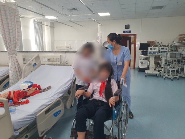 Phụ huynh đến bệnh viện chăm sóc học sinh