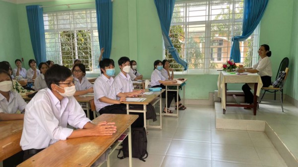 Học sinh Trường THPT Nguyễn Du (H.Châu Đức) trong giờ học
