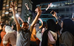 Người dân ở Sidon (Li Băng) ăn mừng vào tối 15.4 khi có thông tin về lệnh ngừng bắn Ảnh: Reuters