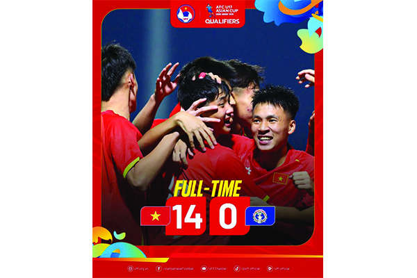 Giành chiến thắng đậm đà 14-0 trước U.17 Quần đảo Bắc Mariana, U.17 Việt Nam chiếm ngôi đầu bảng C, vòng loại giải U.17 châu Á 2026.