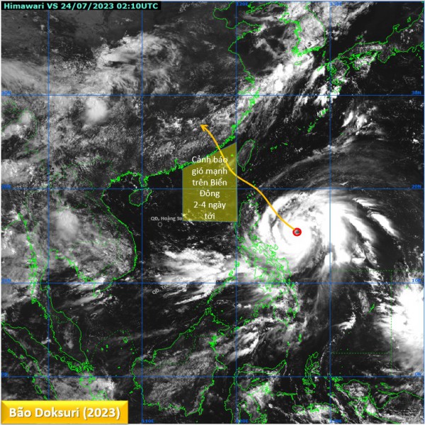 Cơ quan khí tượng nhận định, bão Doksuri có khả năng mạnh lên cấp 15 – cấp 16, đi vào phần đông bắc khu vực bắc Biển Đông và ít có khả năng ảnh hưởng đến đất liền nước ta.
