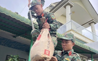 Bộ đội giúp dân đặc khu Lý Sơn (Quảng Ngãi) chèn chống nhà cửa ẢNH: V.TÁNH