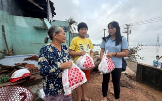 Tại Phú Yên cũ, đoàn đã trao 200 suất quà gồm nước lọc, sữa, mì tôm, bánh mì ngọt, cá hộp và 100 triệu tiền mặt.