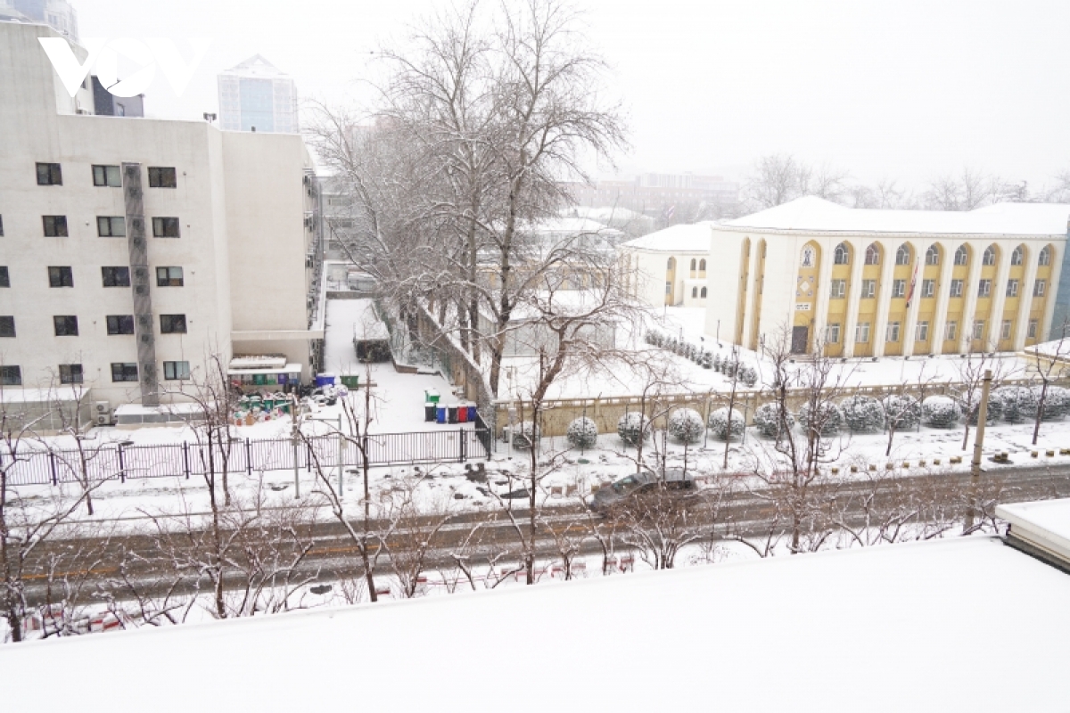 Riêng Bắc Kinh, mức cảnh báo đã được nâng lên màu Vàng, mức trên màu Xanh do tuyết dày tới 6cm, thậm chí quận Xương Bình phải cảnh báo ở mức màu Cam, mức cao thứ 2 chỉ sau báo động đỏ. Dự báo đến sáng ngày 14/2, hầu hết các khu vực trong thành phố tuyết sẽ dày 6cm, một số khu vực phía Tây và phía Bắc dày trên 10cm.