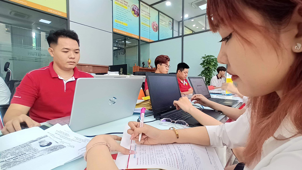 Thí sinh làm thủ tục nhập học sau khi trúng tuyển