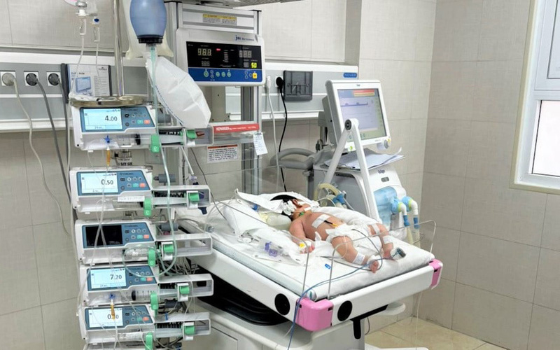 Bệnh nhi H.N.H ( 13 ngày tuổi, trú tại huyện Cẩm Khê, Phú Thọ) được chuyển đến từ Trung tâm Y tế huyện với chẩn đoán viêm phổi.