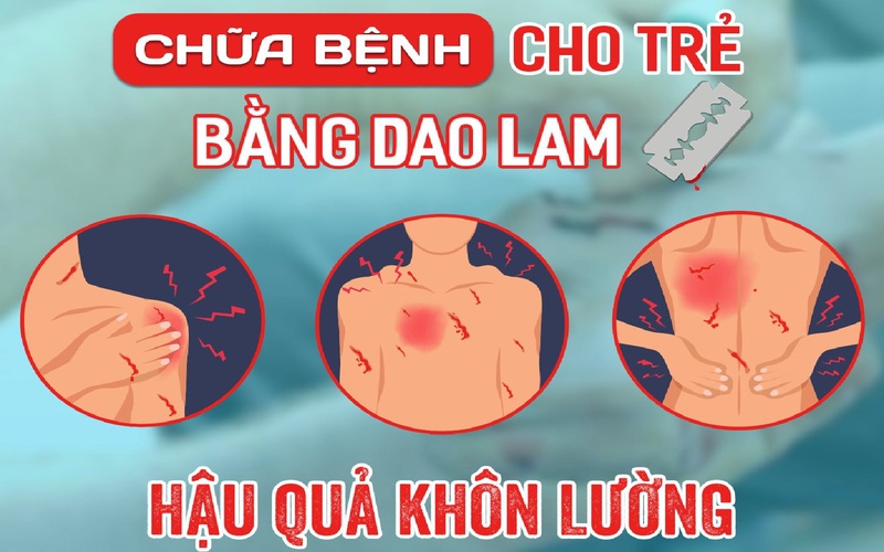 PGS.TS Tạ Anh Tuấn – Trưởng Khoa Điều trị tích cực Nội cho biết, biện pháp chữa bệnh cho trẻ bằng cách dùng dao lam nặn (hoặc rạch) lấy máu… để chữa bệnh cho trẻ là phương pháp hoàn toàn không có tính khoa học, cha mẹ hoặc người chăm sóc trẻ tuyệt đối không nên làm những điều này.