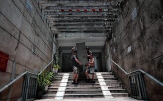 Người dân cư xá Thanh Đa khiêng đồ đạc ra khỏi căn hộ, chuẩn bị bàn giao mặt bằng cho dự án