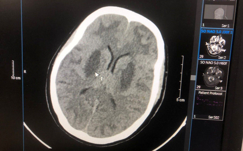 Sau đó, bệnh nhân được chuyển tới Trung tâm Chống độc Bạch Mai trong tình trạng hôn mê, tụt huyết áp, nhiễm toan chuyển hóa nặng, tổn thương não nặng hai bên, nồng độ methanol trong máu là 125 mg/dL, không có ethanol. Bệnh nhân đã được cấp cứu điều trị hồi sức giải độc lọc máu, hiện tri giác có cải thiện nhưng não vẫn tổn thương và phù não nhiều, tổn thương mắt.