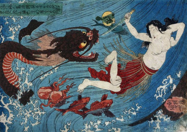 Theo thần thoại Nhật Bản, rồng Ryujin từng dùng phép lạ để đánh cắp viên ngọc quý của ngài Kamatari (614 – 669), trưởng gia tộc quyền lực Fujiwara. Vợ của Kamatari đã lặn xuống đáy biển để lấy lại viên ngọc nhưng bị rồng Ryujin phát hiện và truy đuổi.