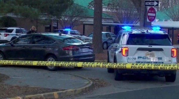 Xe cảnh sát bên ngoài Trường tiểu học Richneck tại TP.Newport News (bang Virginia) sau vụ học sinh lớp 1 bắn bị thương cô giáo
