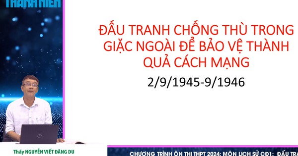 Trong chuyên đề số 1 – Đấu tranh chống thù trong giặc ngoài để bảo vệ thành quả cách mạng, thạc sĩ Nguyễn Viết Đăng Du, giáo viên Trường THPT Lê Quý Đôn (Q.3, TP.HCM), sẽ hệ thống kiến thức lịch sử sau khi Cách mạng tháng Tám thành công (tháng 8.1945), nước Việt Nam dân chủ cộng hòa được thành lập nhưng trong tình thế “ngàn cân treo sợi tóc” và các giải pháp khắc phục tình trạng khó khăn để bảo vệ thành quả cách mạng.