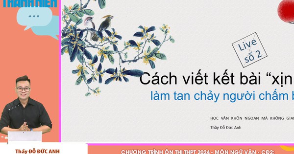 Trong chuyên đề 2 – Những kết bài chất như nước cất, thầy Đỗ Đức Anh, giáo viên Trường THPT Bùi Thị Xuân (Q.1, TP.HCM), hướng dẫn học sinh bí kíp để 5 phút cuối cùng “văn tuôn ra như suối” và tuyệt chiêu viết kết bài chữa cháy hay như học sinh giỏi quốc gia. Đồng thời, thầy giải đáp thắc mắc viết kết bài như thế nào là chuẩn nhất và ấn tượng nhất.