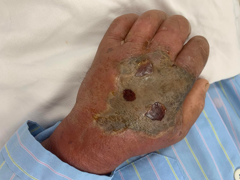 Hiện tại, bệnh nhân đang trong tình trạng suy đa phủ tạng, vết thương do rắn cắn bị hoại tử, nhiễm trùng nặng nề, đang được điều trị và chăm sóc tích cực.