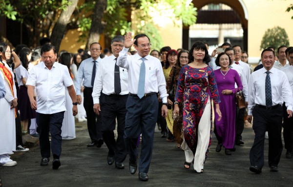 Bí thư Thành ủy TP.HCM Nguyễn Văn Nên dự lễ khai giảng năm học mới với học sinh Trường THPT Nguyễn Thị Minh Khai