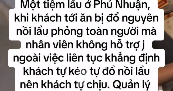 Mạng xã hội chia sẻ đoạn clip không rõ hình ảnh với dòng trạng thái: “Một tiệm lẩu ở Q.Phú Nhuận khi khách tới ăn bị đổ nguyên nồi lẩu bỏng toàn người mà nhân viên không hỗ trợ gì ngoài việc liên tục khẳng định khách tự kéo tự đổ nồi lẩu nên khách tự chịu. Quản lý kéo mình ra giữa quán để khẳng định nhân viên không làm đổ để chối bỏ trách nhiệm chứ không hề có ý hỗ trợ đưa khách đi cấp cứu”.