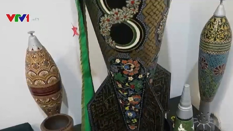 Anh Akram đã đi thu thập vỏ đạn pháo, đem về trang trí cho chúng. Những tác phẩm đầy màu sắc này phải mất hàng giờ để trang trí.