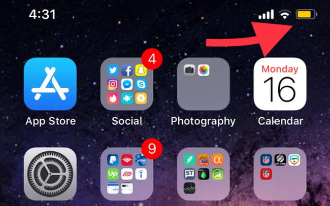 Ngoài hiển thị màu trắng, đỏ hoặc xanh, biểu tượng pin trên iPhone còn hiển thị cả màu vàng để biểu trưng cho chế độ nguồn điện thấp.