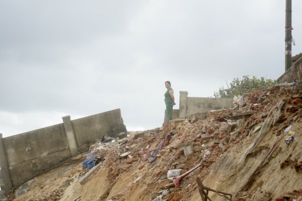 Nhiều người dân không khỏi lo sợ khi sóng biển ngày càng gần nhà của họ |