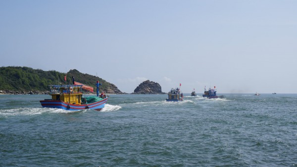 Tàu cá của ngư dân Hoài Nhơn ra khơi đánh bắt hải sản sau lễ ra quân