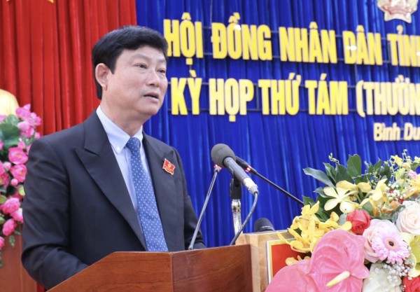 Ông Võ Văn Minh, Chủ tịch UBND tỉnh Bình Dương phát biểu tại kỳ họp