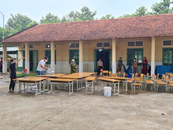 Ngày 13.2, nhiều trường mầm non, tiểu học tại tỉnh Bình Phước tất bật vệ sinh trường lớp, chuẩn bị các điều kiện, sẵn sàng đón học sinh trở lại trường học trực tiếp từ 14.2.