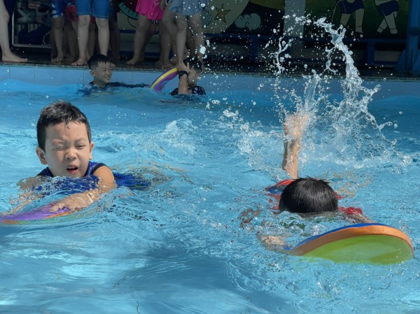 Học sinh ở Trường tiểu học Lê Đức Thọ được học bơi tại trường. Đây là một trong số ít trường ở TP.HCM có hồ bơi |