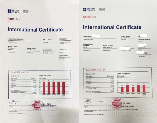 Lý giải việc này, Hội đồng Anh cho biết do sơ suất về mặt hành chính, đơn vị này và các bên liên kết chưa kịp thời báo cáo Cục Quản lý chất lượng, Bộ GD-ĐT về việc vẫn cấp chứng chỉ Aptis mẫu cũ từ ngày 11.11-22.12.2022. Điều này kéo theo hệ quả hơn 800 sinh viên Trường ĐH Tôn Đức Thắng (TP.HCM) bị cấp sai mẫu chứng chỉ có thể “mất trắng” cả thời gian ôn tập và lệ phí thi vì nhà trường không công nhận chứng chỉ này trong hoạt động đào tạo.