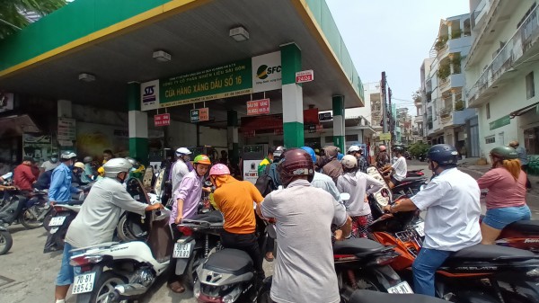 Nhiều cây xăng quá tải khi người dân đến mua xăng rất đông |