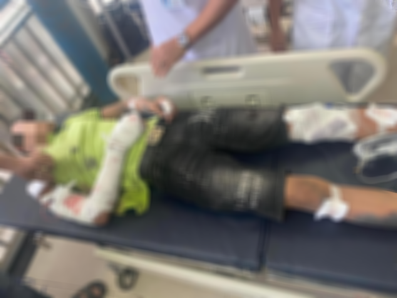 Tại Khoa Cấp cứu, bệnh nhân được chẩn đoán bỏng 10% cơ thể do nổ điện thoại và chuyển vào Khoa Ngoại lồng ngực – chỉnh hình – bỏng điều trị. Các bác sĩ đã hội chẩn chuyên khoa Mắt và xử trí vết bỏng, vết thương phần mềm, dùng kháng sinh và thay băng hàng ngày cho bệnh nhân.
