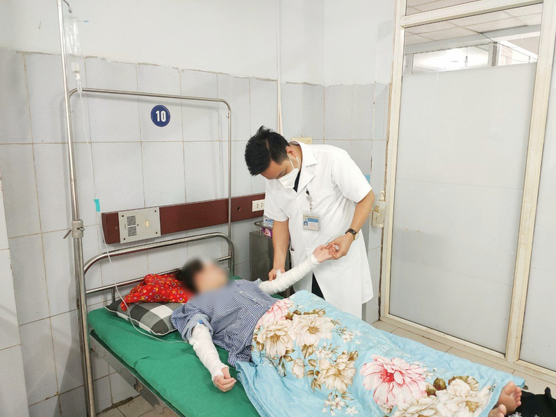 ThS.BS Quàng Văn Hải, Phó Trưởng Khoa Chấn thương chỉnh hình cho biết: Bệnh nhân bị bỏng vùng mặt, 1/3 dưới cánh tay 2 bên, cẳng tay 2 bên phòng dộp, loét trợt da đau nhức, được chẩn đoán bỏng độ II, III (diện tích khoảng 7%). Khi vào khoa, bệnh nhân đã được thăm khám, điều trị và chăm sóc các vết thương ngay.