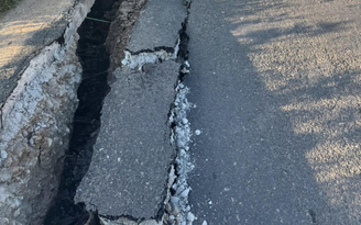 Vụ sụt lún, sạt lở với chiều dài khoảng 61 mét, mặt đường nứt gãy