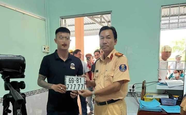 Theo đó, khoảng 15 giờ ngày 20.7, anh Q.C.X đến trụ sở Công an TP.Cà Mau thực hiện đăng ký biển số cho xe máy và đã may mắn bấm được BS 69B1 – 777.77.