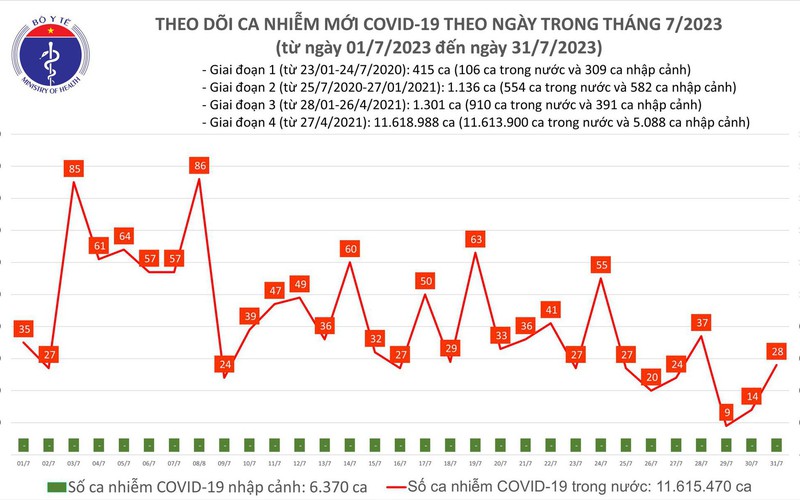 Theo Bản tin Bộ Y tế về tình hình dịch COVID-19, trong ngày 31/7, cả nước ghi nhận 28 ca mắc mới; có 1 bệnh nhân được công bố khỏi bệnh.