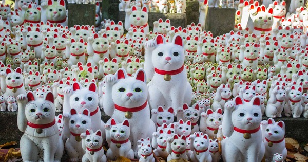 Tượng mèo Maneki Neko với một bàn chân luôn vẫy là hình ảnh không chỉ phổ biến ở Nhật mà còn trên toàn châu Á. Nếu giơ chân trái lên, người ta tin mèo sẽ kéo khách hàng. Còn chân phải thì hút tiền bạc và sự thịnh vượng nói chung.