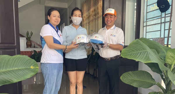 Nhân viên SCTV trao nón an toàn SCTV cho KH trúng thưởng giải khuyến khích