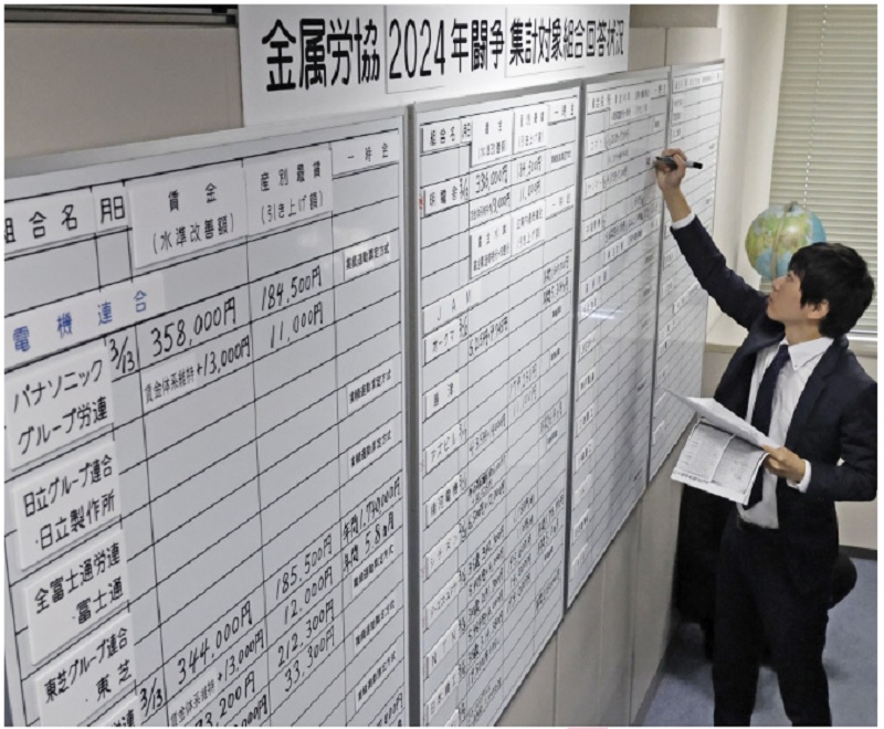 Reuters dẫn thông báo từ tổ chức công đoàn Rengo cho biết lao động tại các công ty lớn đã yêu cầu mức tăng lương hằng năm là 5,85%, lần đầu tiên đạt mốc 5% sau 30 năm. Rengo đại diện cho khoảng 7 triệu lao động, trong đó có nhiều người làm việc ở những công ty lớn.