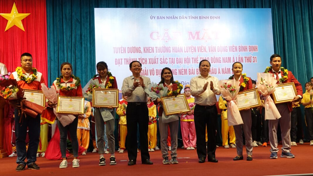 Ngày 3.6, UBND tỉnh Bình Định tổ chức tuyên dương và khen thưởng HLV, VĐV tỉnh này đạt thành tích xuất sắc tại SEA Games 31 được tổ chức ở Việt Nam và giải vô địch Bóng ném bãi biển châu Á tại Bangkok, Thái Lan.