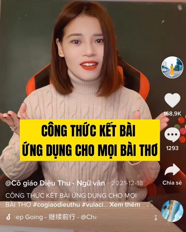 Đầu tháng 1.2021, thạc sĩ Lê Trần Diệu Thu (27 tuổi, giáo viên ngữ văn Trường CĐ Xây dựng công trình đô thị, Hà Nội) lần đầu đăng tải bài giảng lên TikTok chia sẻ mẹo làm văn nghị luận xã hội. Cô Thu không ngờ chỉ vài ngày sau, video trở thành “cú hích” với một triệu lượt xem. Tròn một năm sau, kênh TikTok của cô cán mốc hơn 600.000 lượt theo dõi, trở thành điểm đến hàng đầu của những bạn trẻ muốn học tốt môn văn.