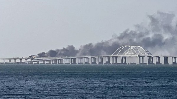 Khói đen dày đặc bốc lên từ đám cháy trên cầu Kerch nối Crimea với đất liền Nga sau khi một chiếc xe tải phát nổ vào ngày 8/10/2022. Ảnh: AFPTrong một bài đăng trên Telegram, Thống đốc Sevastopol Mikhail Razvozhaev cho biết, Nga đã tạo một màn khói trong khu vực của thành phố như một kiểu ngụy trang. Theo một báo cáo ở địa phương, khói cũng được ghi nhận ở thành phố cảng Feodosia. Động thái này của Nga nhằm bảo vệ cơ sở hạ tầng của Moscow khỏi các cuộc không kích của Ukraine.