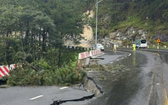 Đèo Prenn sụt lún, sạt lở nghiêm trọng , cơ quan chức năng cấm các phương tiện lưu thông, chuyển qua đèo Mimosa và ra vào Đà Lạt