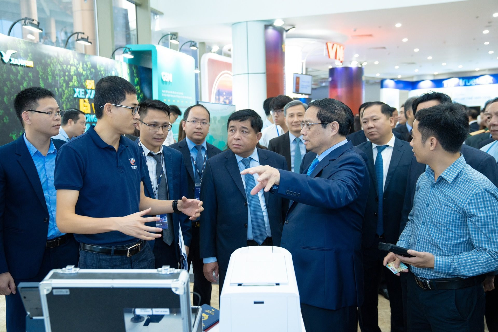 Thủ tướng Chính phủ Phạm Minh Chính ghé thăm khu trưng bày các sản phẩm công nghệ cao Make in Vietnam của MK Group và Liên minh MK.
